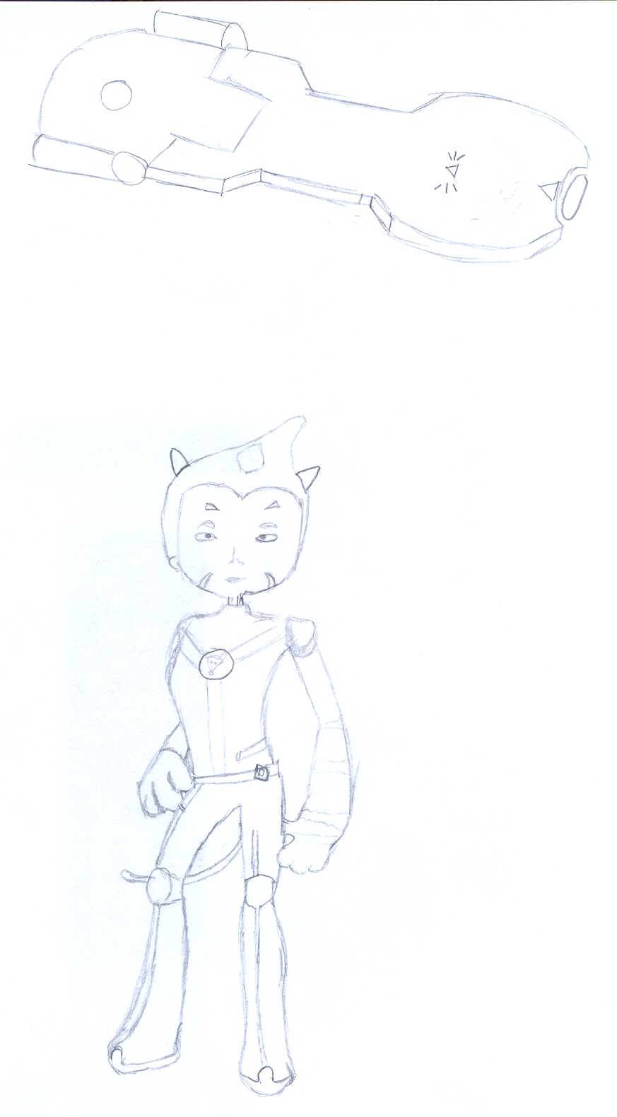 Il y a encore pas mal de boulot sur la perspective ! Il faut amélioré le coup de crayon qui n'est pas terrible. Ensuite le gros problème est bien sûr les proportions et les déformations d'Odd. Le visage est égalemment à recommencer (yeux, bouche, nez etc). |
