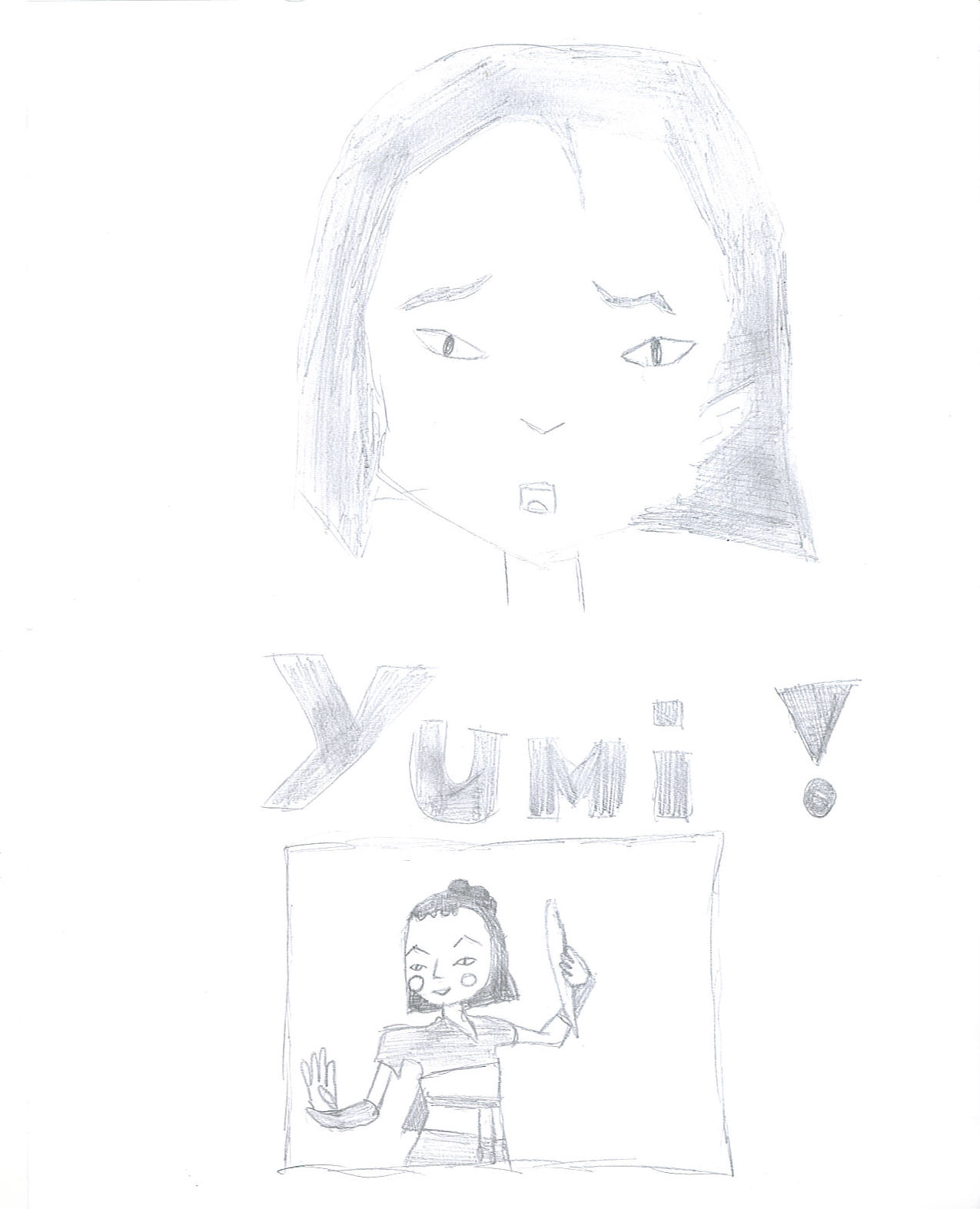 Très moyen. Le dessin de Yumi n'est pas top en lui-même; et en plus ton trait de crayon est vraiment à revoir : il faudrait paut être utilisé un crayon plus gras ... Je te mets 6/20 pour le travail ! |