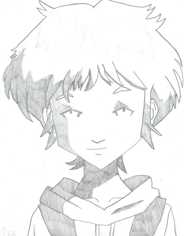 Il est vrai que ce dessin est très bien fait, laisser en noir et blanc est bien aussi (et je devrais en faire plus :-* ) mais je pense que les yeux ne ressortent pas assez, ce qui fait défaut au dessin. |
