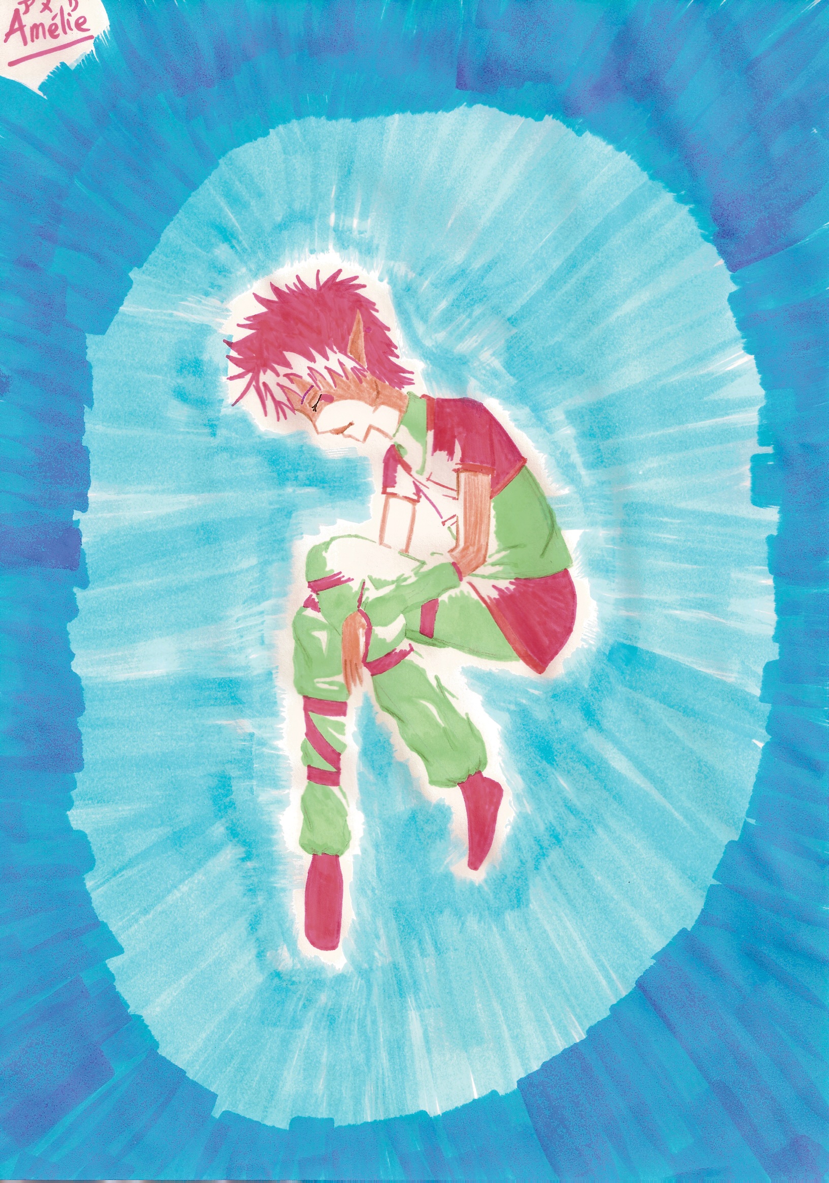Je sais pas comment tu as fait la lumière mais c'est magnifique (love) chuis pas fan de sa coupe de cheveux mais le dessin est original !