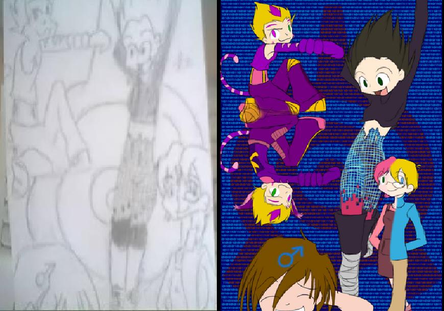 Vraiment, tu te moques du monde. Tu prend un fanart, tu t'en inspires et tu t'amuses a poster les deux en même temps pour que les gens pensent que tu as fait celui de droite.