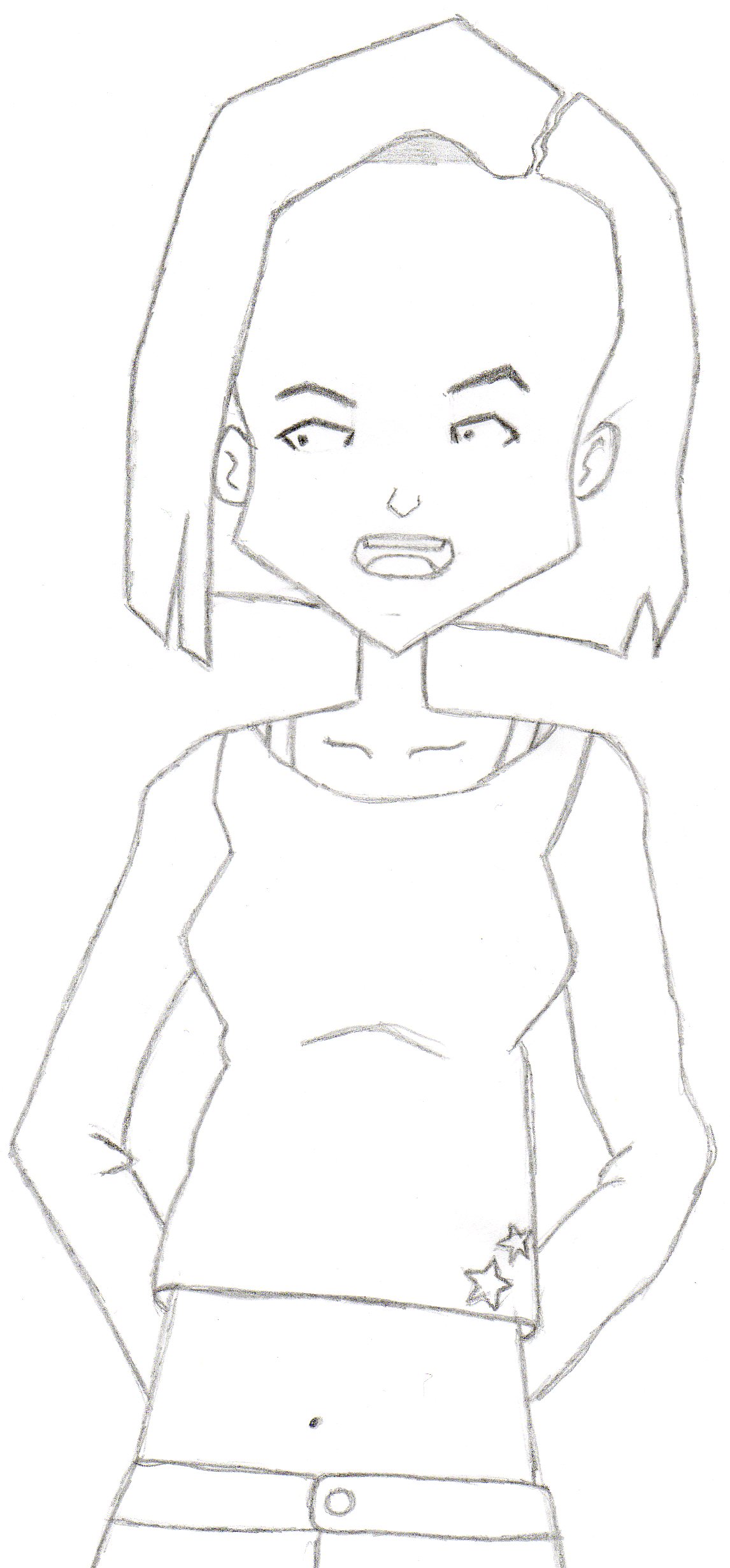 Il y a quelque petit défaut, déjà le visage est un ptit peu pas très bien placé, quelque petites choses autres, mais je sais que c'est dur à dessiner. C'est ton premier dessin ? Si oui, sache que c'est vraiment bien. Déjà, ton très est assez corect, dessin bien soigné. Cela mérite une bonne note en tout cas.