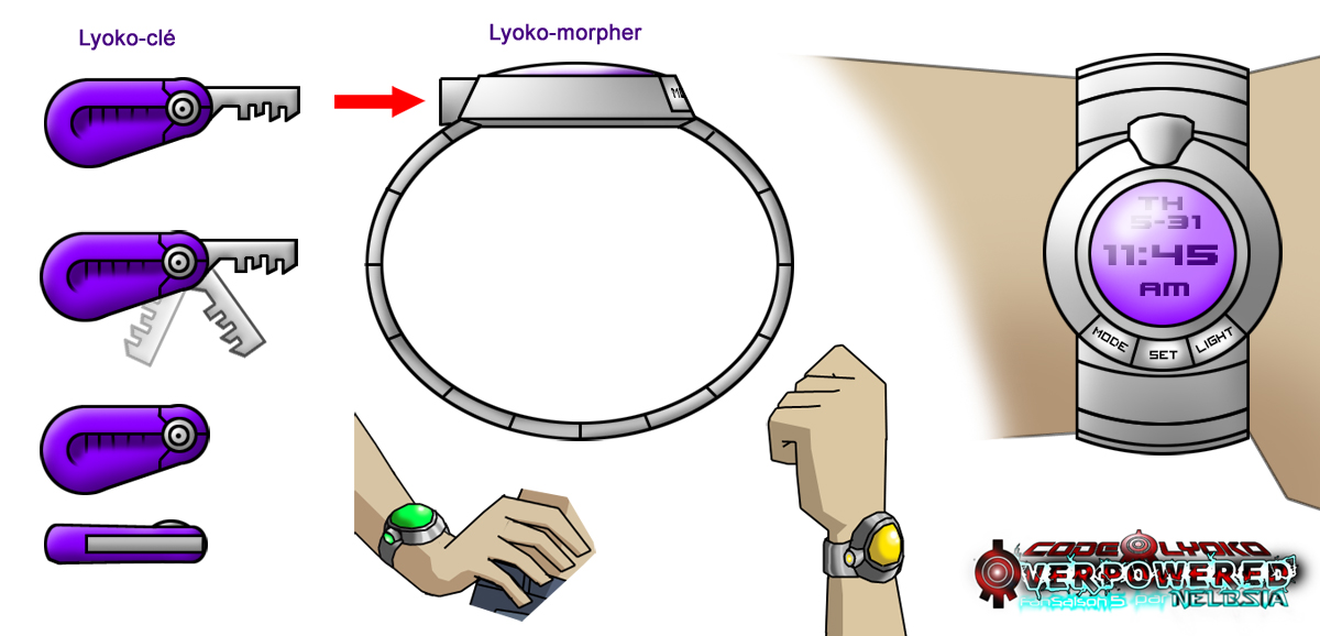 Lyoko-clé et Lyoko-morpher permettant aux héros de se transformer en Lyoko-guerriers sur Terre pour contrer les attaques de X.A.N.A. (dans ma fanfiction Code Lyoko Overpowered).