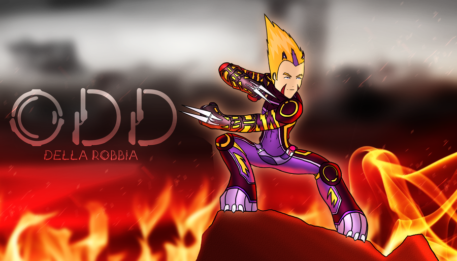 Les flammes et le fond sont absolument super, par contre on dirais que Odd et le rocher sont en 2D par rapport au fond qui l'est moins. Ensuite il y'a pas mal de choses à revoir ! L'écriture est trop grosse et je ne pense pas que ce soit nécessaire pour ce dessin.