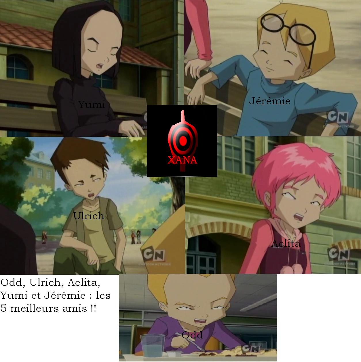 Eh... mais c'est trop simple, non ? D'accord avec Punkoo, xiim4ginati0n-0ddx et Odd est aplati ! Et l'œil de XANA n'est pas très bien... Desolée, mais je mets un 10... J'aime le slogan: Odd, Ulrich, Aelita, Yumi et Jérémie: les 5 meilleurs amis !!... mais je n'aime pas ton fanart... -_-' |